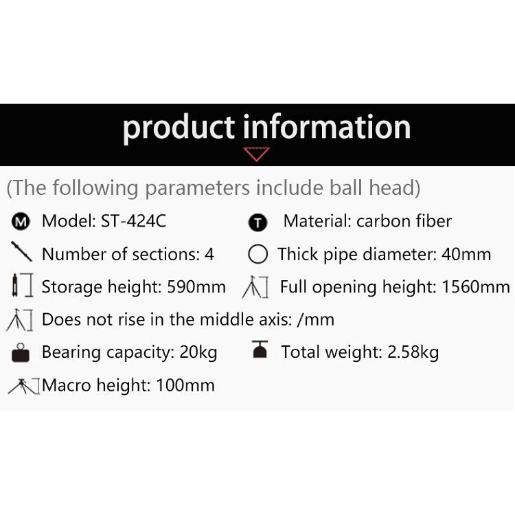 BEXIN ST424C Rugged Camcorder Photographic Carbon Fiber Big Tripod, Max Tube: 40mm