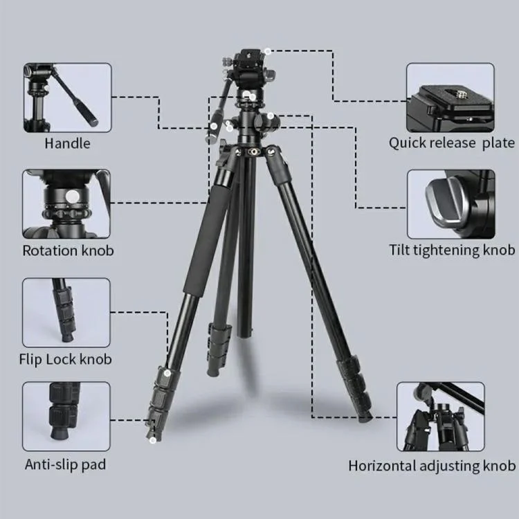 3. Heavy-Duty Construction: Made of high-quality aluminum alloy, it boasts a maximum load capacity of 8kg, suitable for most DSLR/ILDC cameras, camcorders, projectors, and other equipment.