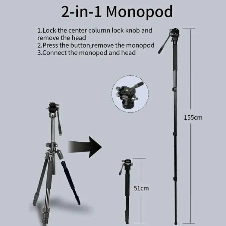 JMARY KS355+HG60 360 Degree Panoramic Ball Head DSLR Camera 2-in-1 Monopod Tripod