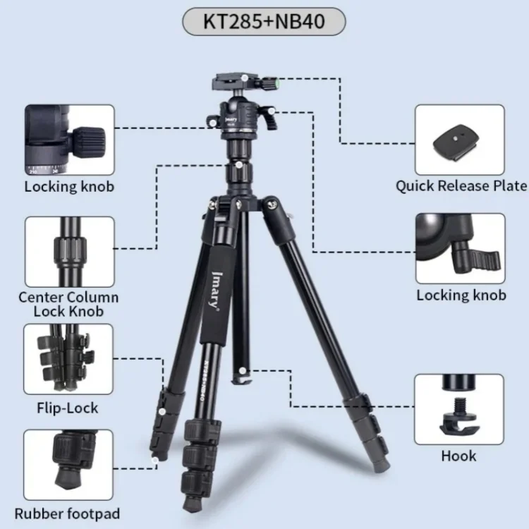 JMARY KT285+NB50 Camera Stand Extendable Height Aluminum Alloy Camera Holder Tripod