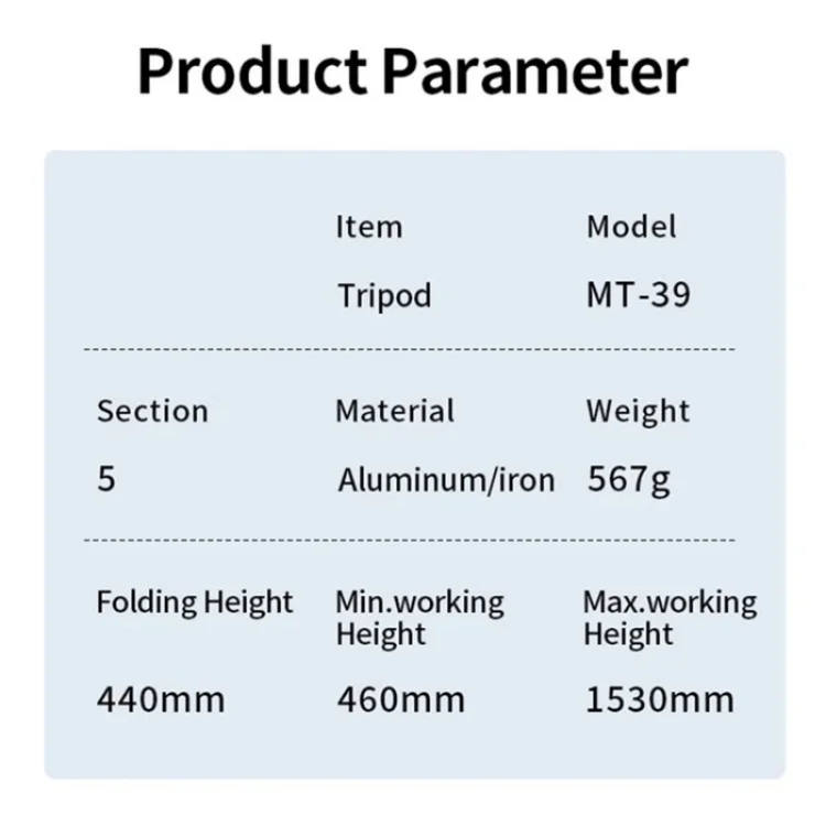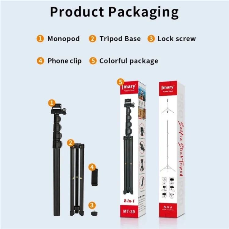 JMARY MT-75 Telescopic Camera Phone Stand Portable Photography Lightweight Tripod