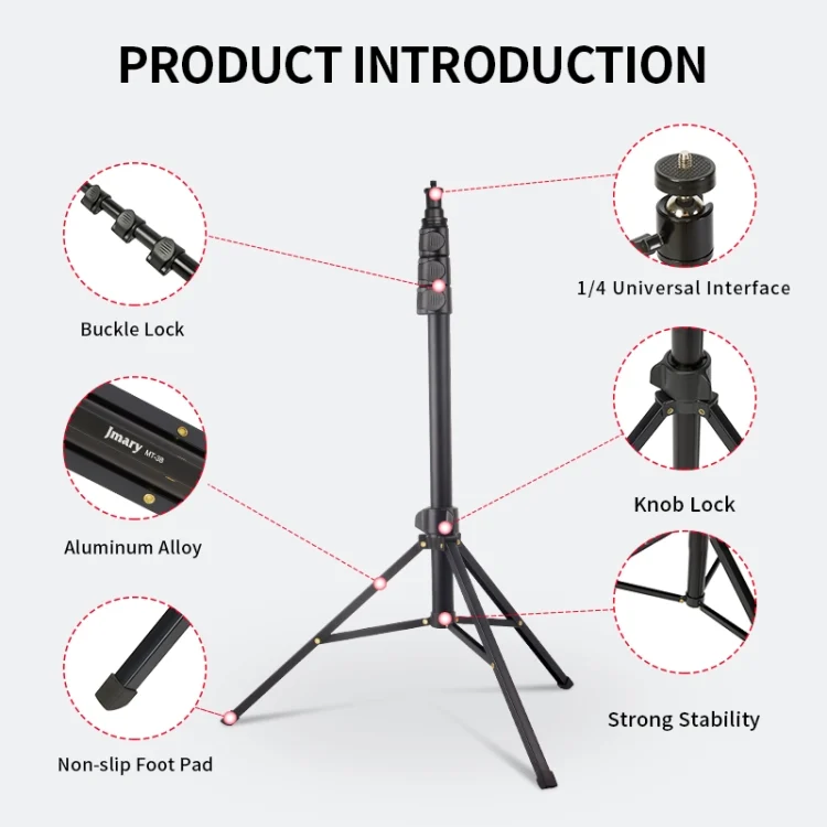 JMARY MT38 Travel Tripod Phone Holder 1.68m Telescopic Vlogging Camera Mount Tripod Stand