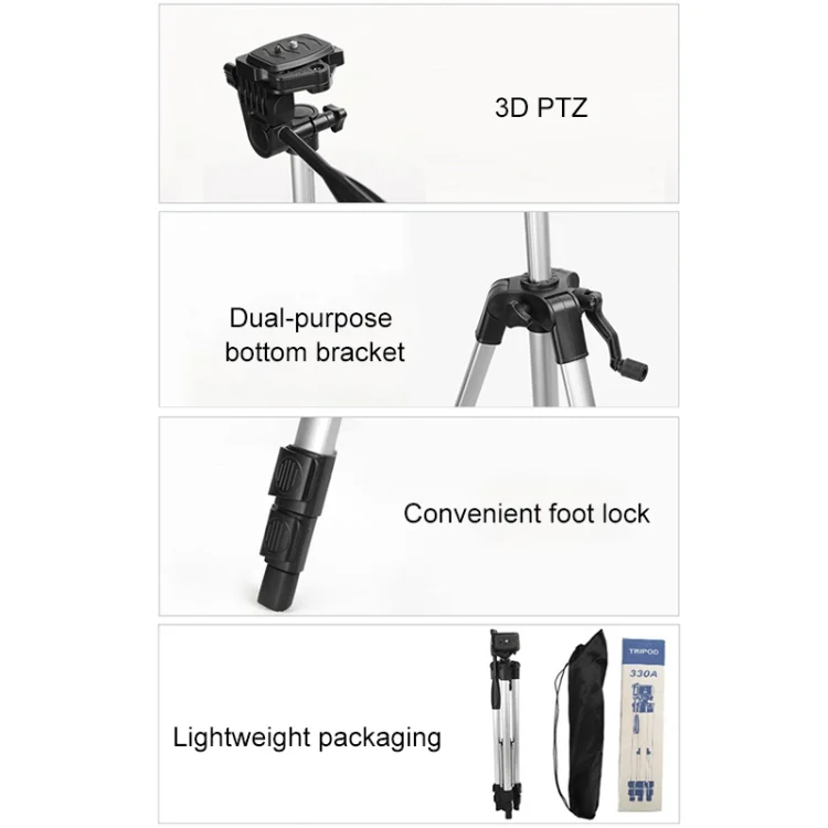 Live Broadcast Tripod 3-Section Folding Legs Aluminum Alloy Tripod Mount with U-Shape Three-Dimensional Tripod Head & Phone Clamp for DSLR & Digital Camera, Adjustable Height: 47.5-133cm