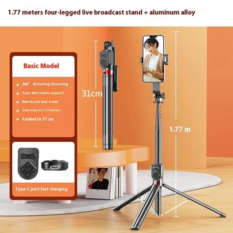P100TK For Outdoor Photography Selfie Stick 360 Degree Rotation Anti Shake Phone Tripod Stand