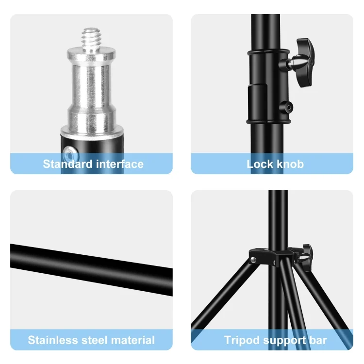 1. Aluminum alloy tube, spray paint treatment, upper and lower locking joints and middle seat, the base is reinforced nylon injection molding, wear resistance and brittleness, good strength.
