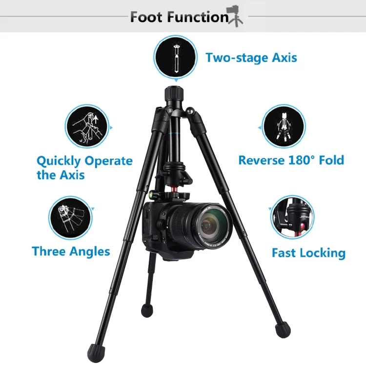 2. Tripod body is made of magnesium alloy and eco-friendly ABS plastic. Tripod feet made of soft, non-slip rubber make it easy to shoot on uneven surfaces.