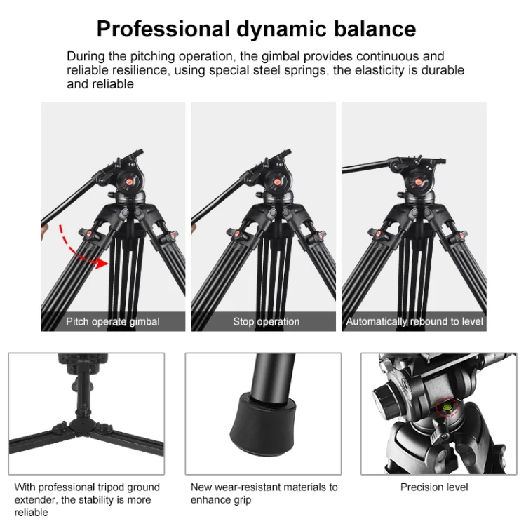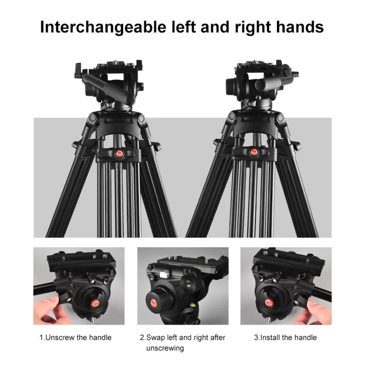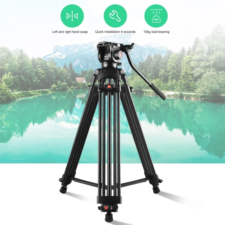 PULUZ Professional Heavy Duty Video Camcorder Aluminum Alloy Tripod with Fluid Drag Head for DSLR / SLR Camera, Adjustable Height: 80-160cm