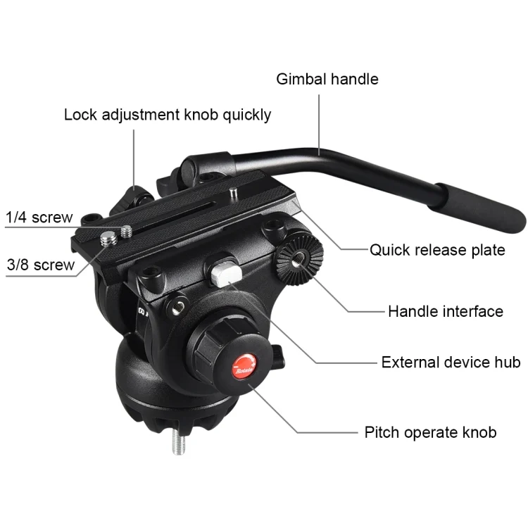 2. Fluid damping head system for smooth rotate and tilt for recording.