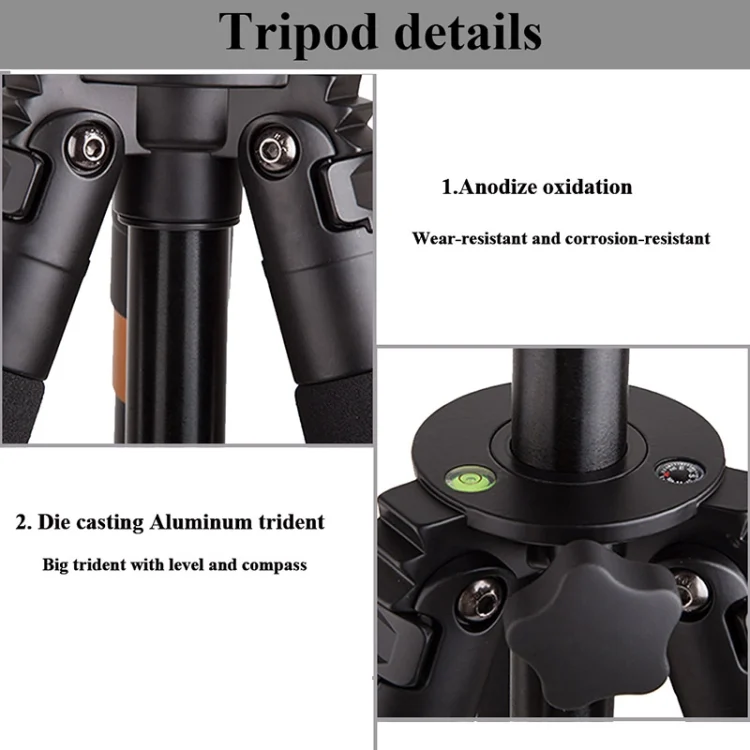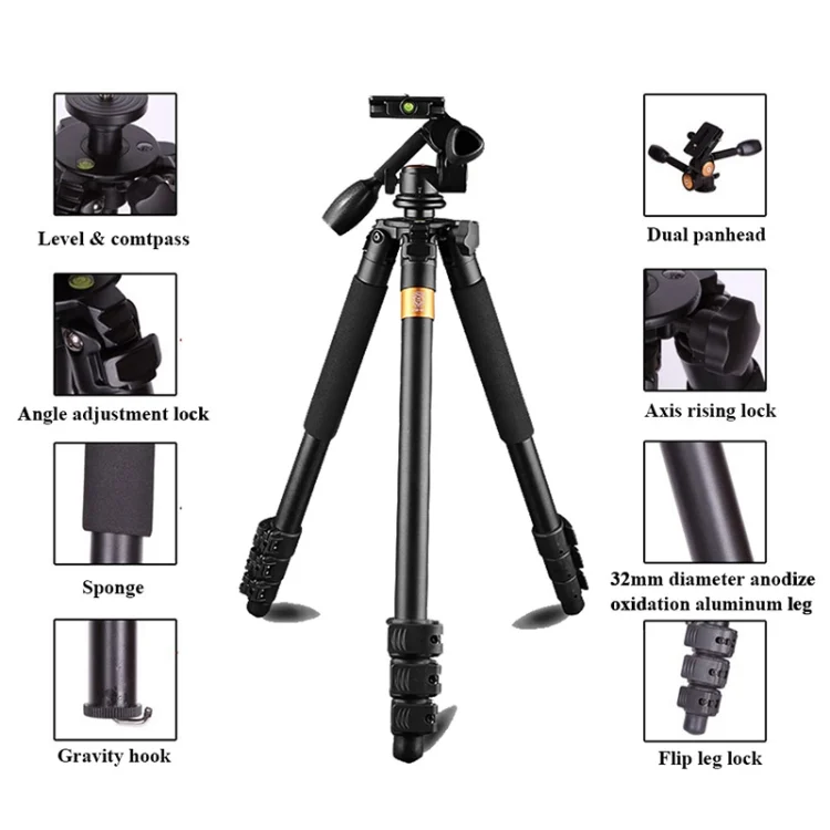Q620 4-Section Folding Legs Heavy Duty Aluminum Alloy Tripod With Three-Dimensional Damping Tripod Heads