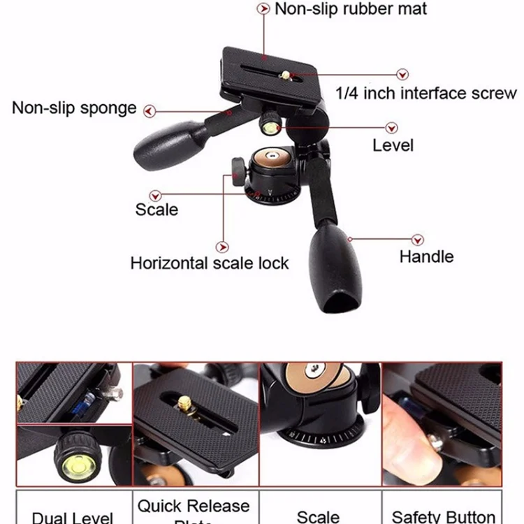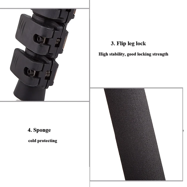 Q222 Portable 4-Section Folding Legs Aluminum Alloy Tripod Mount Monopod Holder with Ball Heads