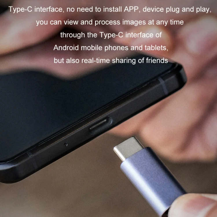 4. Type-C interface, no need to install APP, the device is plug and play, you can view and process images at any time through Android phones and tablets with Type-C interface, and you can also share the circle of friends in real time