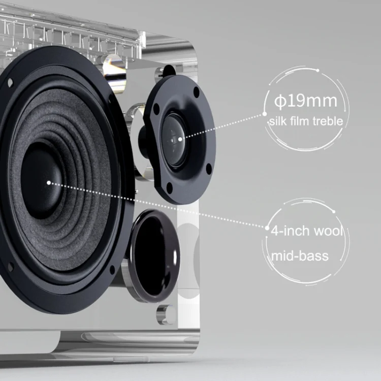 6. 19mm silk film treble, mellow tone, delicate, stretched and calm listening; 4-inch wool mid-bass, mid-range thick and stable, low-frequency dive powerful