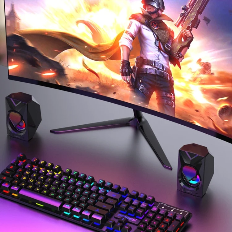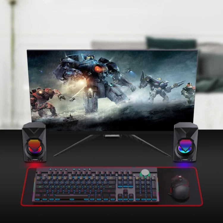 FOREV FV-209 One Pair Digital Mini Speakers Multimedia Colorful Lights Subwoofer Small Speaker