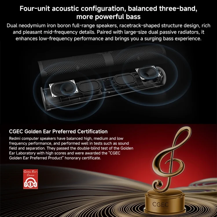 7. Four-unit acoustic configuration, large full-range speakers, surging bass