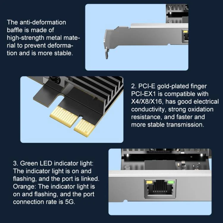 2. Equipped with a standard RJ45 network port, data transmission speeds up to 5Gbps
