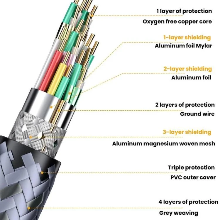 8. Multi-layer protection and shielding reduce signal loss, ensuring stable transmission and minimizing issues like latency, screen flickering, or blackouts
