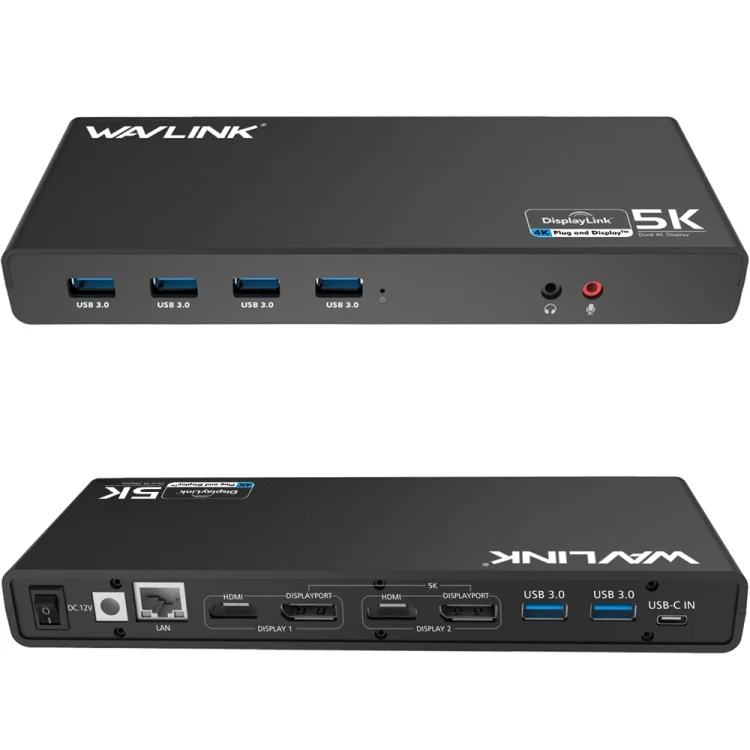 Wavlink UG69DK1 5K Type-C Dual Display USB 3.0 Video Gigabit Ethernet HDMI Docking Station
