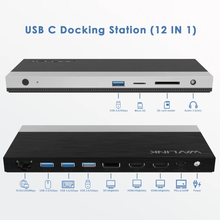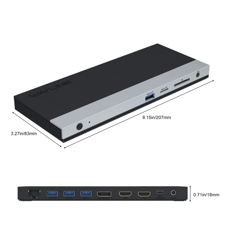Wavlink UMD05 Display Port HDMI Port RJ45 Ethernet Triple Display MST Laptop Docking Station