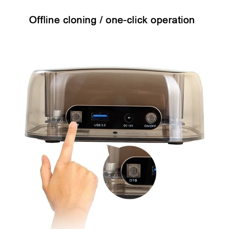7. Connect the power supply to back up the original disk data to the target disk without connecting to the computer. Press and hold the OTB button for 3-5 seconds. After the offline clone indicator lights up, press the OTB button again. .