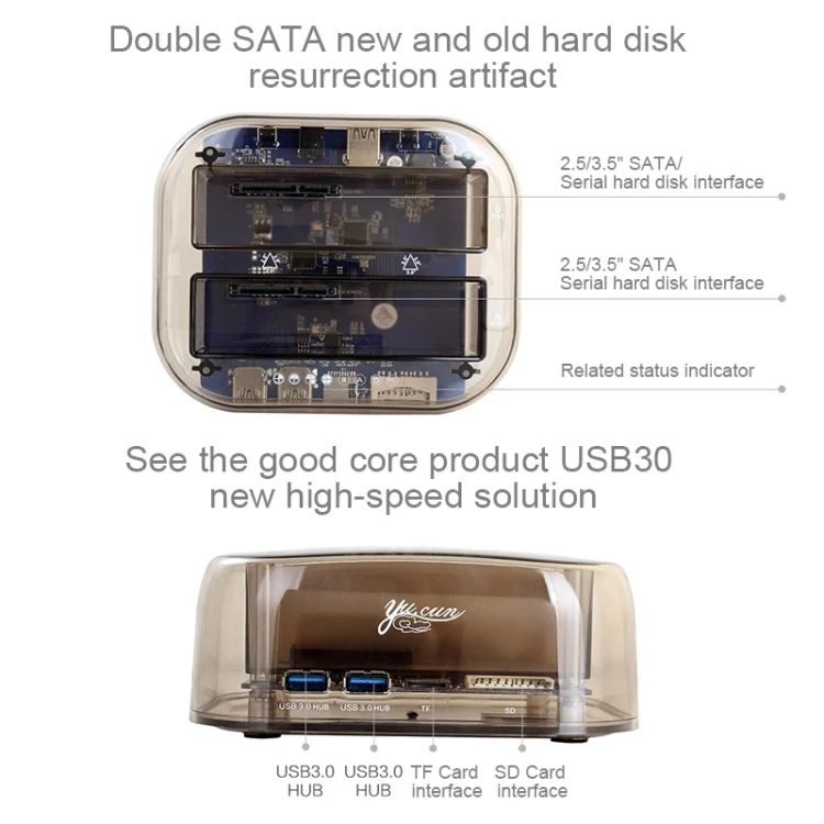 1. Support 2.5/3.5-inch SATA interface hard disk, SD card and TF card and all standard USB digital devices at the same time, data interaction without interference, daily storage expansion one button to get.