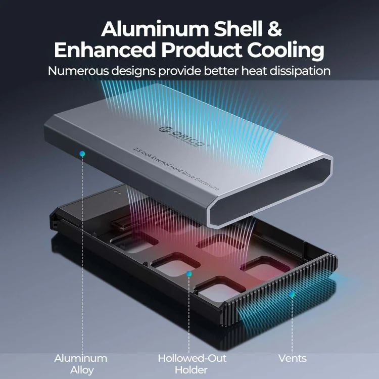 2. Aluminum alloy shell fast heat conduction, side of the multi-hole heat dissipation design, the temperature is exported more quickly, the hard drive read and write more stable