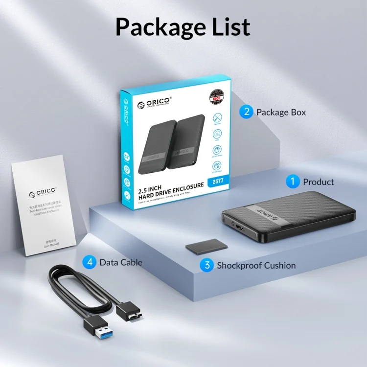 ORICO 2577U3-V1 Grid Texture Design 2.5 inch USB3.0 Micro-B Hard Drive Enclosure Box