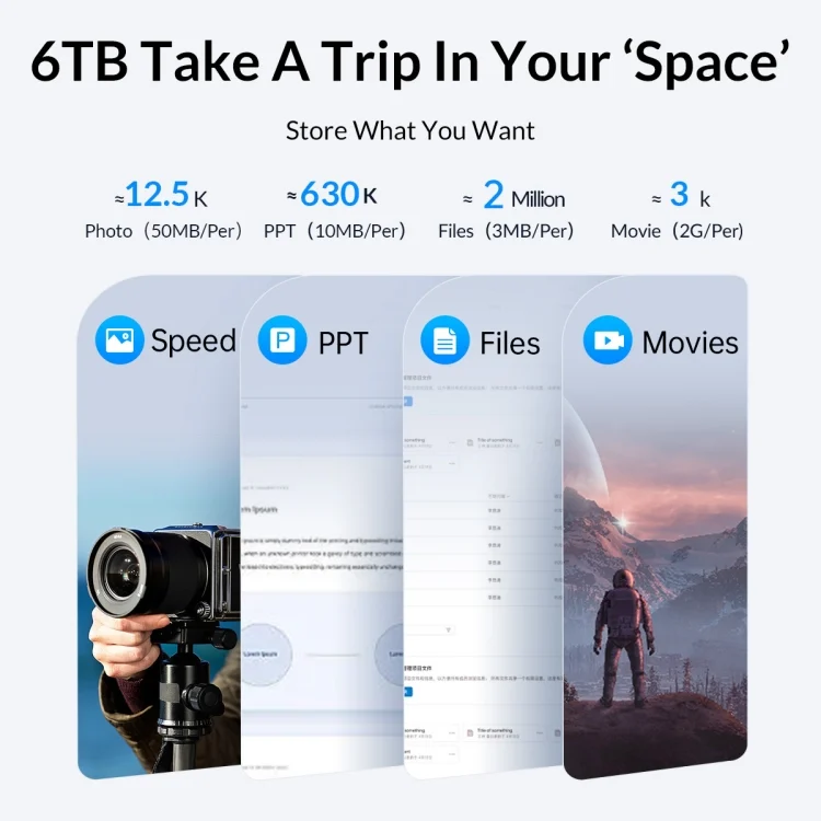 5. Supports 6TB Max large capacity can store massive videos, songs and pictures