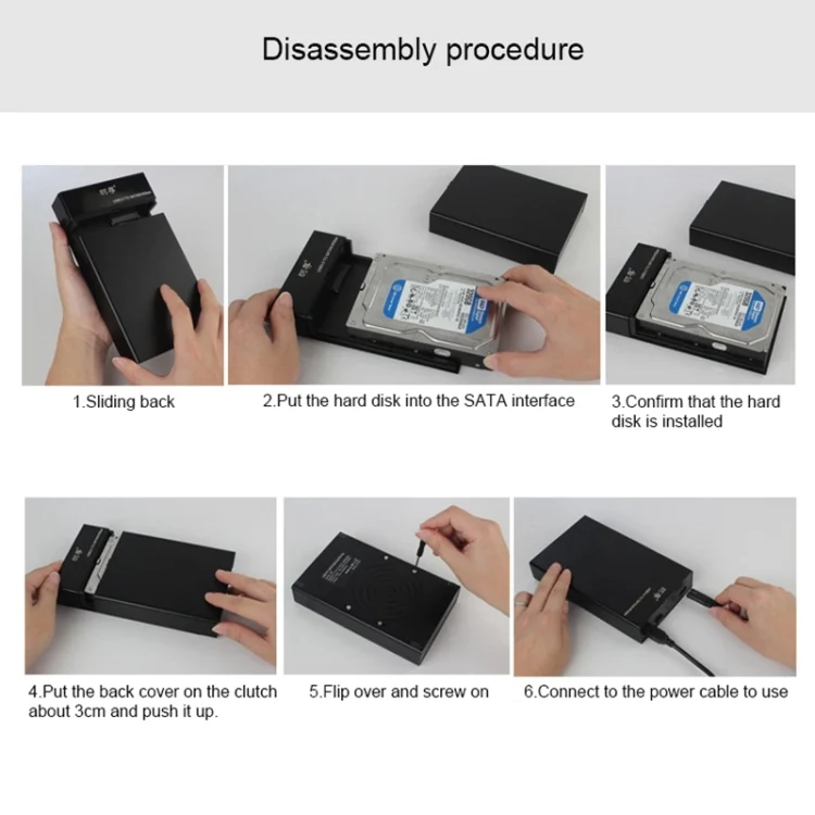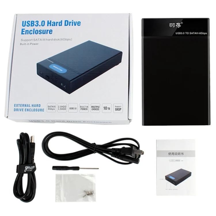 Universal SATA 2.5 / 3.5 inch USB3.0 Interface External Solid State Drive Enclosure for Laptops / Desktop Computers, The Maximum Support Capacity: 10TB