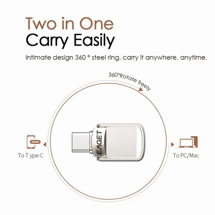 USB 3.1 + USB-C Interface Metal Twister Flash U Disk, with Micro USB Adapter & Lanyard