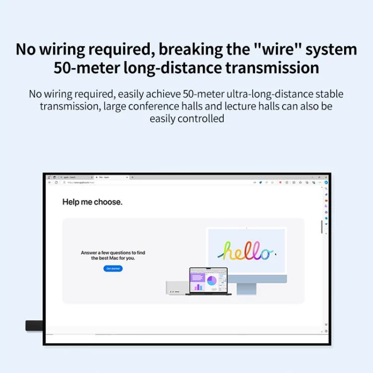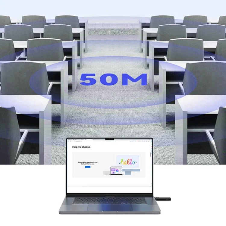 6. No wiring is required, easily achieve 50 meters ultra-long-distance stable transmission, large conference halls and lecture halls can also be easily controlled.