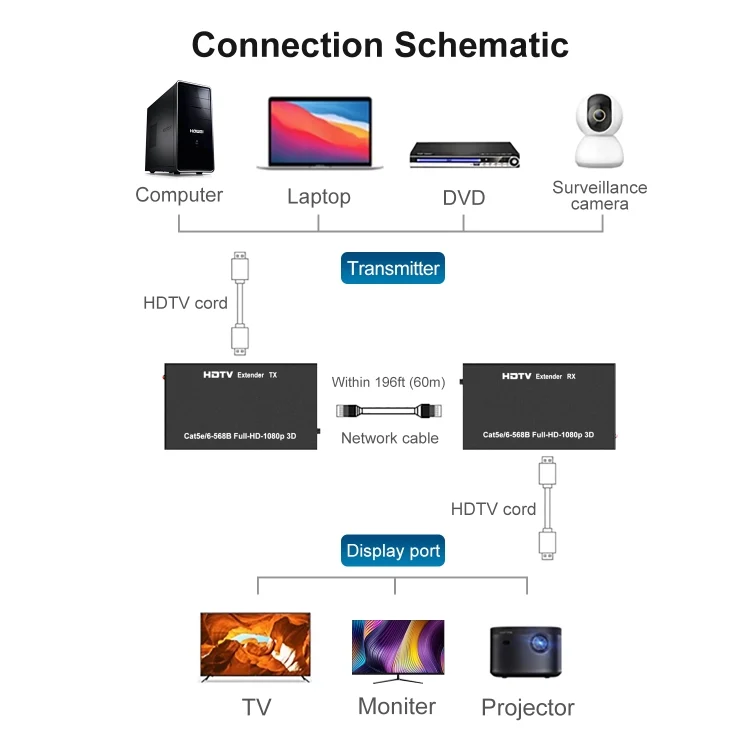 2. 196 ft (60 m) Long-Distance Transmission: Supports lossless transmission up to 196 ft (60 m), ideal for large space installations.
