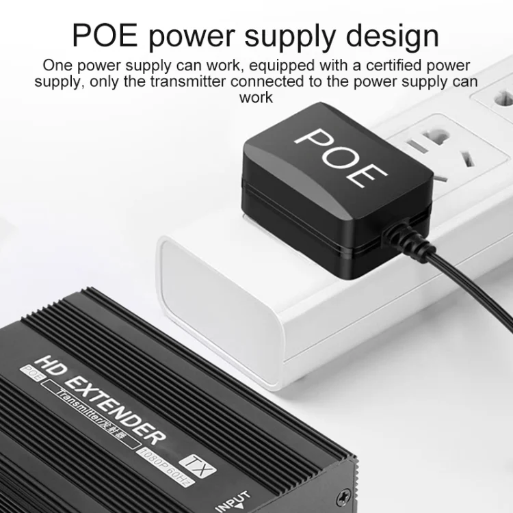 3. POE unilateral power supply, we use a special technology to allow the cable connected to the transmitter and receiver to transmit power. Only one power adapter can support the entire kit operation, reducing a lot of complicated operations. It is simpler and more convenient.