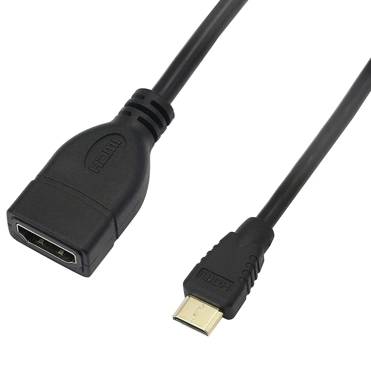 17cm Gold Plated Mini HDMI Male to HDMI 19 Pin Female Cable(Black)