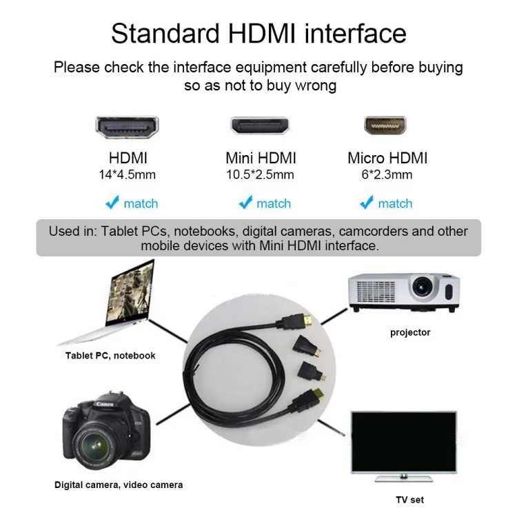 3 in 1 Full HD 1080P HDMI Cable Adaptor Kit (1.5m HDMI Cable + HDMI to Mini HDMI Adaptor + HDMI to Micro HDMI Adaptor)