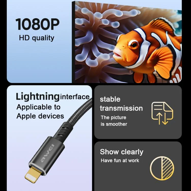 awei CL-213L 8 Pin to HDMI 1080P HD Adapter Cable