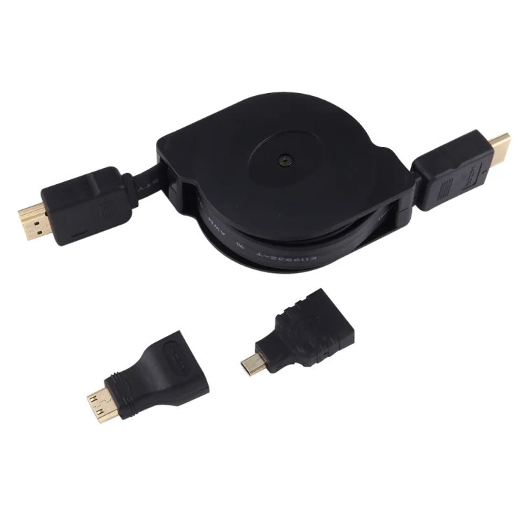1m HDMI Male to HDMI Male Retractable Video Audio Connector Adapter Cable with Mini HDMI & Micro HDMI Adapters for HDTV Monitor & Projector & PC & Cameras & Tablets & Smartphones