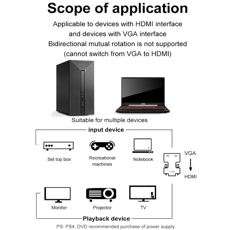 11. Scope of application: applicable to devices with HDMI interface, devices connected to VGA interface, does not support two-way mutual transfer