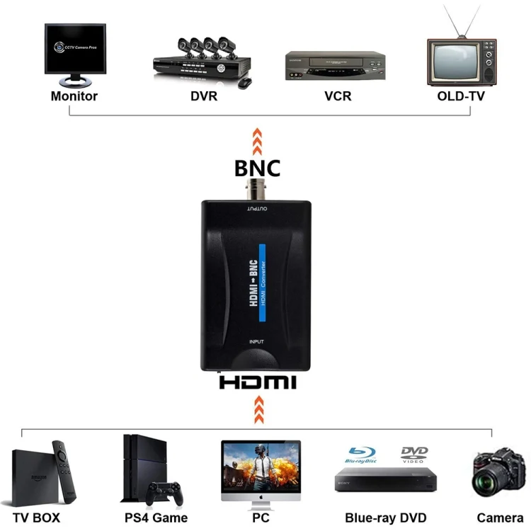 2. For HDMI video to display on regular TV and VHS video / recording player, DVD recorders that can receive BNC signal