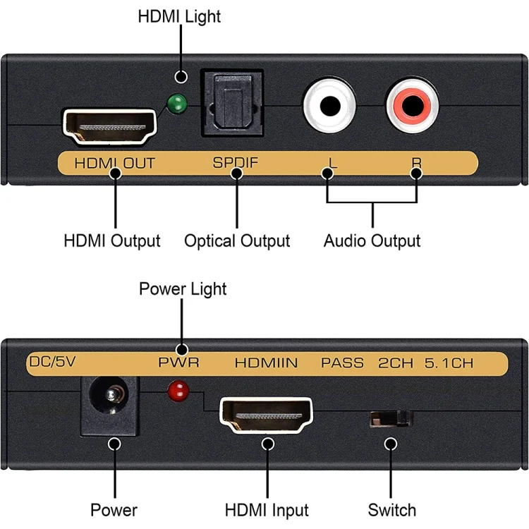 1. High quality HDMI to HDMI & Audio (SPDIF + R/L) converter