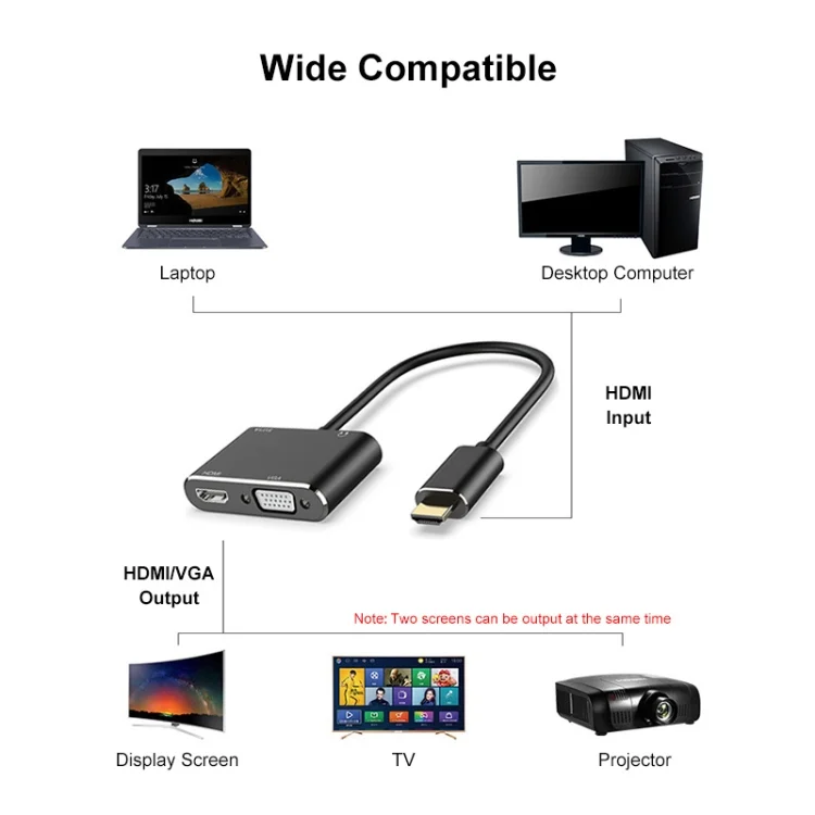 2.【Dual Monitors Setup simultaneously】HDMI and VGA port can work simultaneously, you can use HDMI to HDMI and VGA at same time.