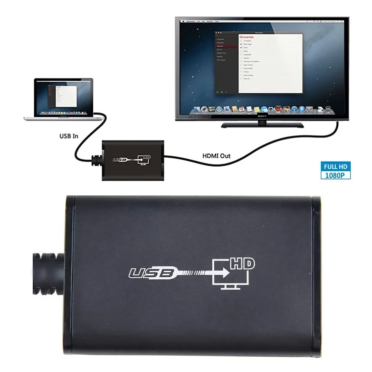 1) This USB to HDMI Converter provides the versatility of converting any standard USB 2.0 port to a HDMI output connection. This unit will enable virtually any PC or Mac to connect to a High Definition Display (HD TV or Projector etc.) via a standard HDMI Cable