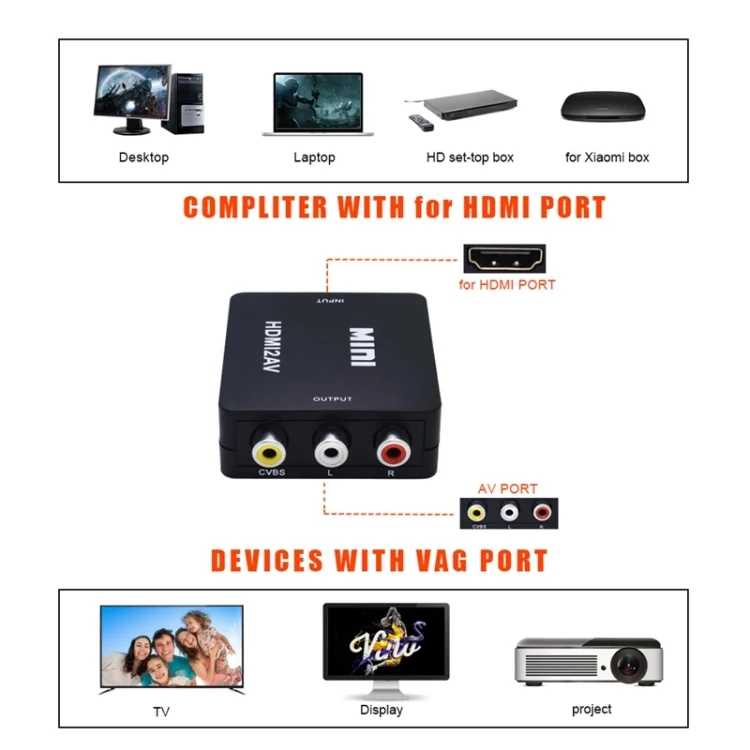 VK-126 Mini HD HDMI to AV/CVBS Video Converter Adapter