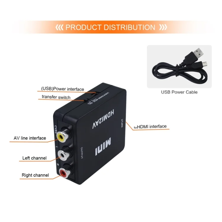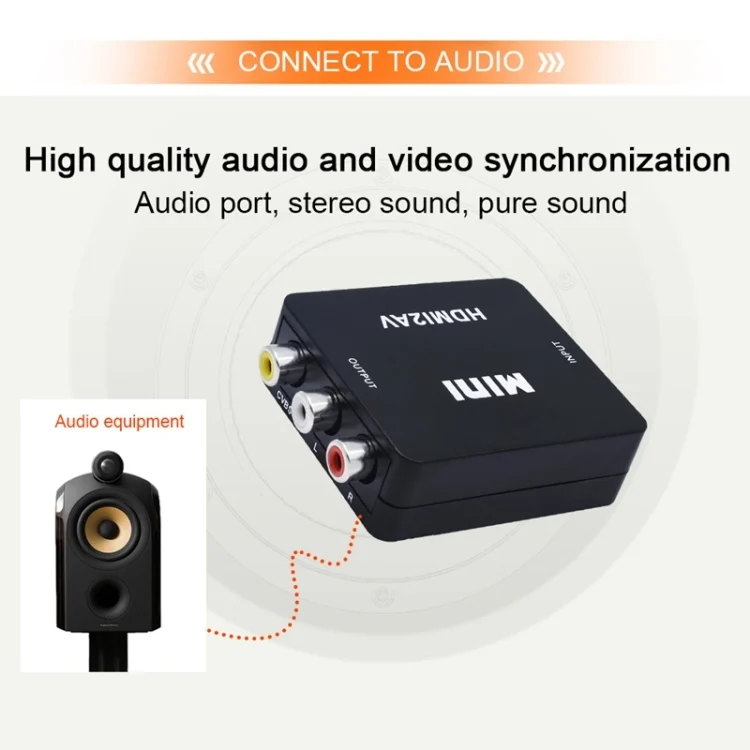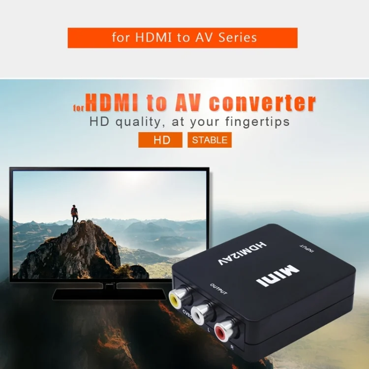 2. Convert HDMI signal to composite/ video + audio R/L signal. High bandwidth capability support 1920×1080@60Hz.