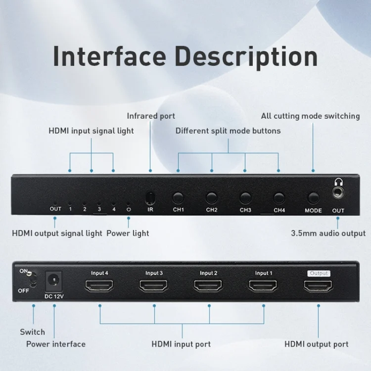 Measy MV4341 4K 30Hz 4 In 1 Out HDMI Quad Screen Splitter, Plug Type: US Plug
