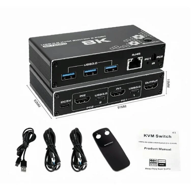 K1 2 Ports HDCP 2.3 RJ45 USB 3.0 Hubs Adapter 4K 120Hz HDMI 2.0b USB-C KVM Switch