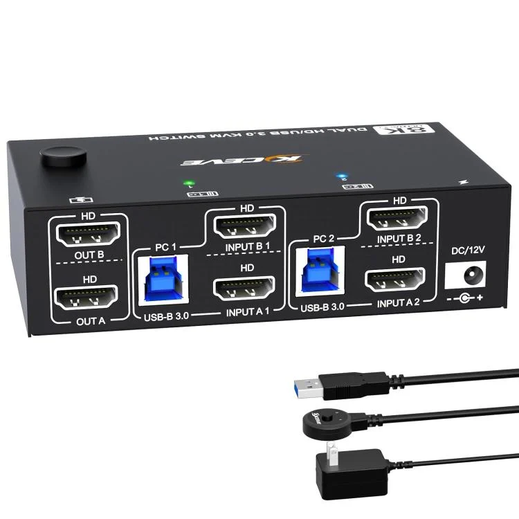 KC-KVM8202 8K 60Hz USB3.0 / HDMI 2-Port Dual Monitor KVM Switch