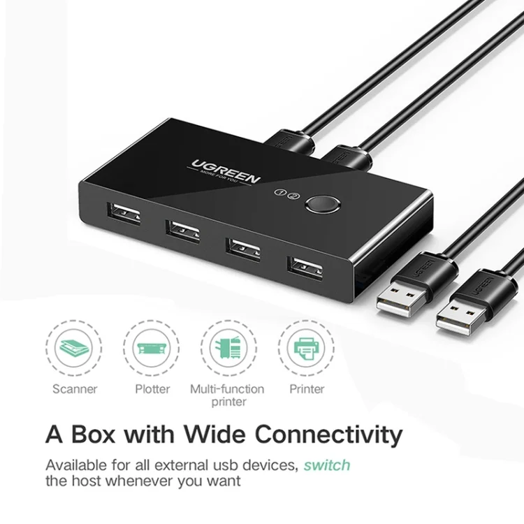 Ugreen USB Switch Selector 2 USB Ports Sharing 4 USB Ports Switcher Adapter for Mouse, Keyboard, Printer