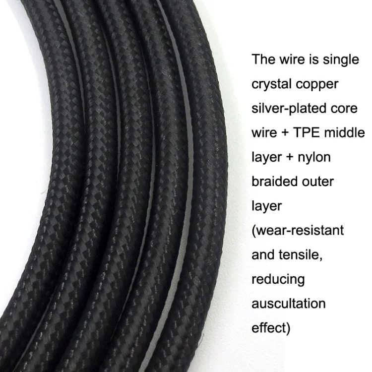 2. The wire is single crystal copper silver-plated core wire + TPE middle layer + nylon braided outer layer (wear-resistant and tensile, reducing auscultation effect)