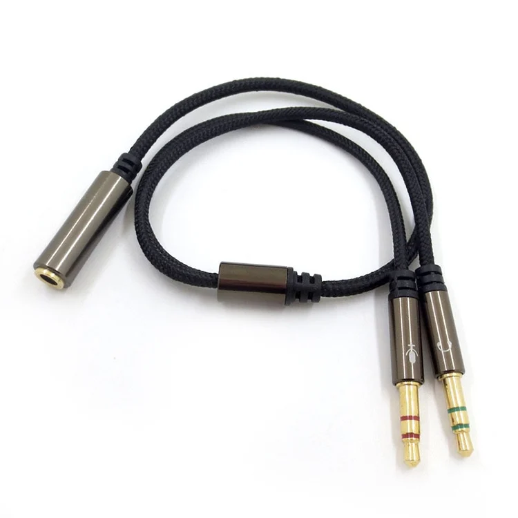 1. Two male ports, one for headphone jack on PC/laptop/mobile phone, and the other for microphone jack on PC/laptop/mobile phone