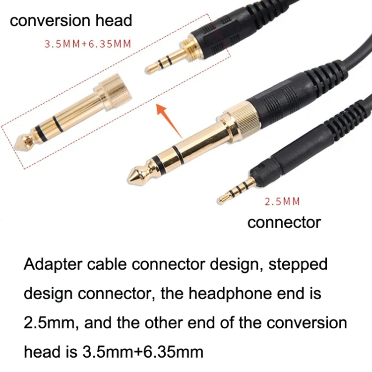 4. Adapter cable connector design, stepped design connector, the headphone end is 2.5mm, and the other end of the conversion head is 3.5mm+6.35mm